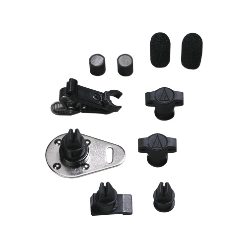AT8537 供電模組; AT8539 連線別針;衣服別針底座;蛇型別針底座;磁性別針底座和金屬片連索帶; 3個單話筒支架; 2個雙話筒支架; 2個收音頭保護蓋; 2個防風棉罩;電池;保護袋
