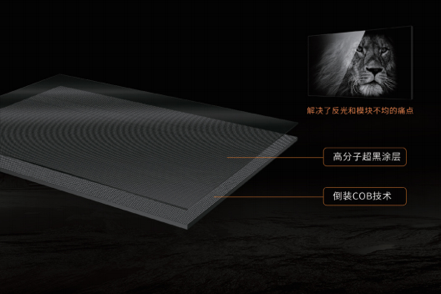 ② 倒裝COB技術(shù),重新定義畫(huà)質(zhì):基于倒裝COB技術(shù),屏幕表面采用高分子材料墨色涂層,帶來(lái)令人驚艷的對(duì)比度和黑色一致性。同時(shí)解決了屏幕表面反光和模塊化明顯的痛點(diǎn),圖像細(xì)節(jié)纖毫畢現(xiàn),畫(huà)面栩栩如生。