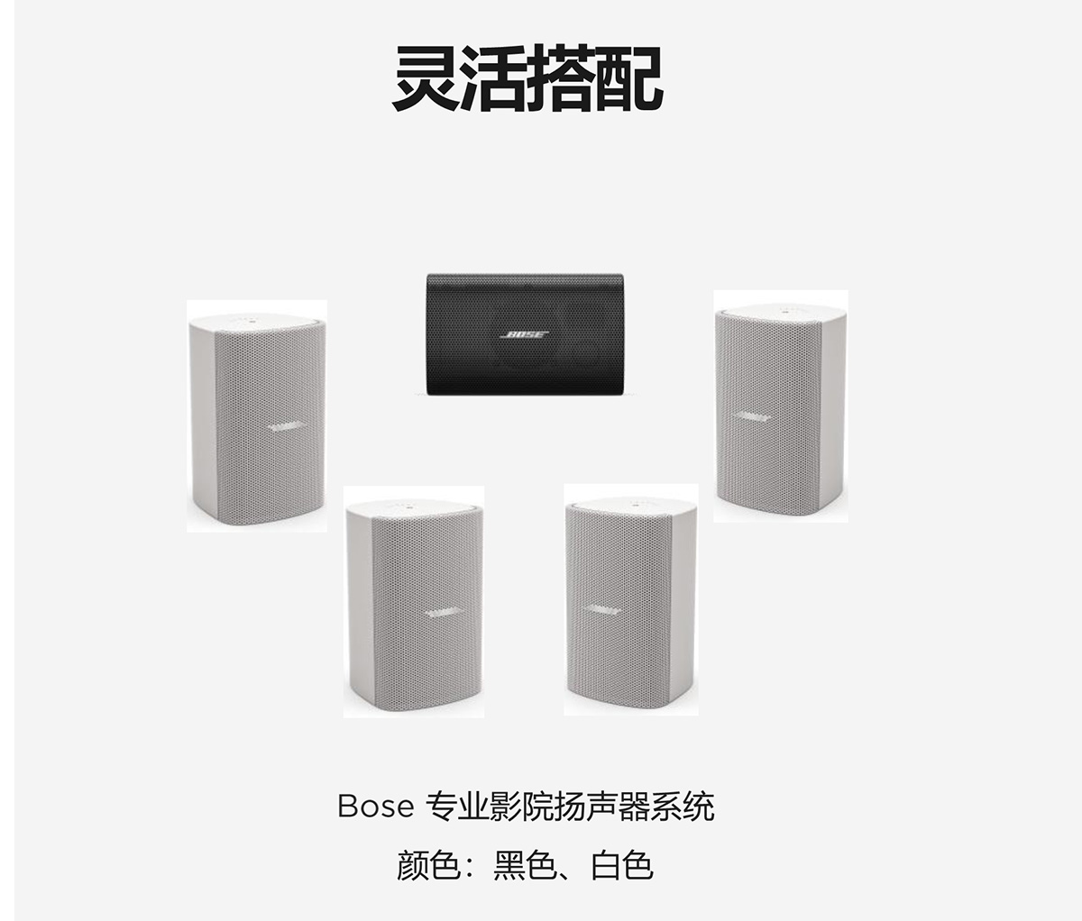 ● 每個聲道采用相同型號揚聲器,保持功率輸出的一致性。